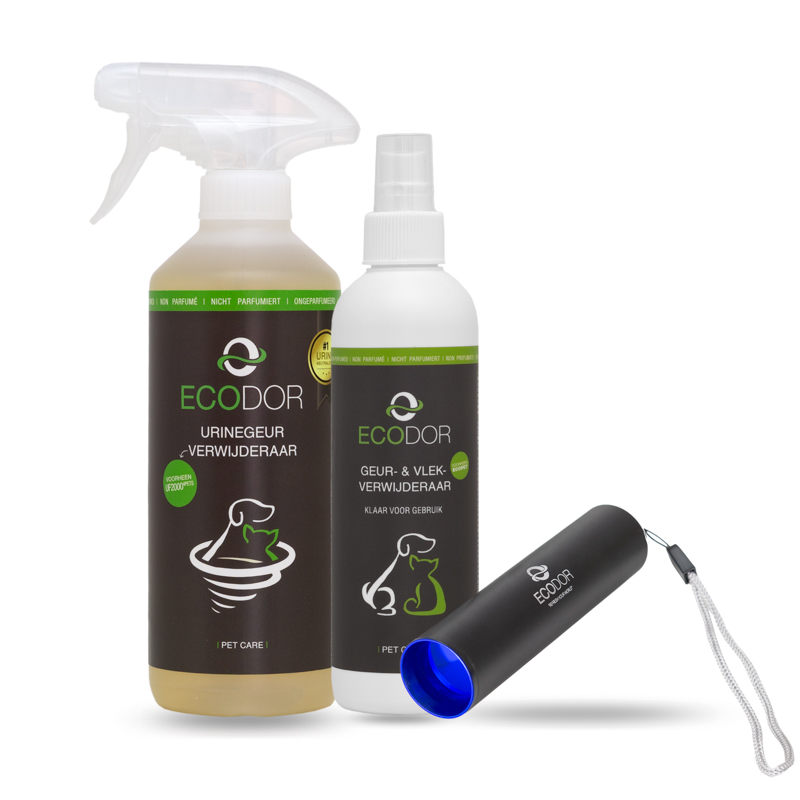 Da noi ora trovi un fantastico pacchetto vantaggioso con due dei nostri prodotti più popolari: EcoPet 250ml e UF2000 4Pets 500ml. Inoltre, ricevi un pratico Rilevatore di Macchie di Urina EcoLight, ideale per individuare le macchie di urina nascoste.