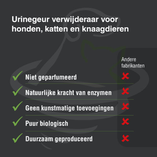 Zeer goed product, de urinegeur gaat weg zelfs hardnekkige oude vlekken na paar herhaalde behandelingen. ik zou uf 2000 niet meer kunnen missen zeker met een oude kater